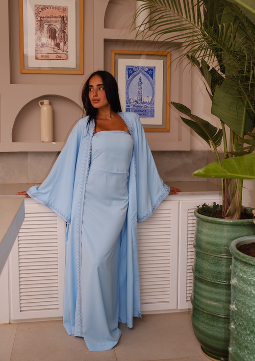 La collection Farah Rez décrit une rencontre entre l’Orient et l’Occident à travers des lignes fluides et légères.